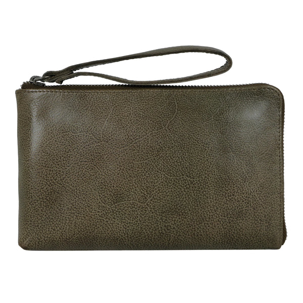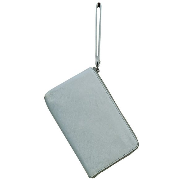 Designed for grab-and-go convenience, this bag features a secure exterior wristlet strap for easy handling.