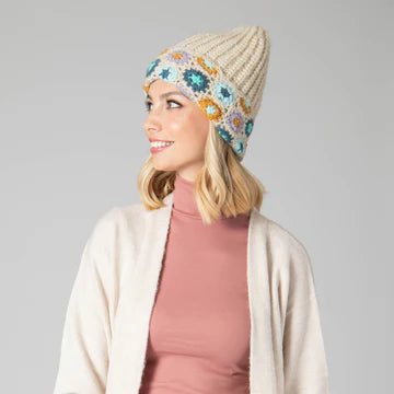 For cold weather with style, you can't beat this cozy Curb Crochet Beanie! With its adorable pastel floral accent, you'll look bright and cheery even when the weather isn't! Make winter a breeze with this hand-knit and cuffed beanie!