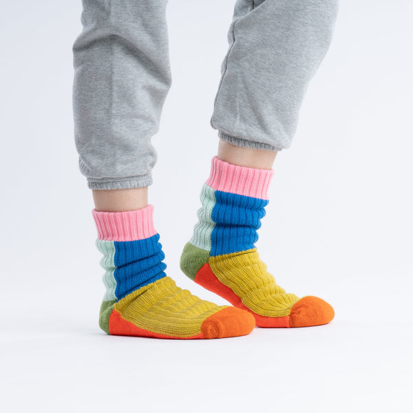 These unisex fleece-lined knit slipper socks are the best of both worlds! The easy fit of socks meets the plush comfort of house slippers. Bold and bright colorblocking will keep you cozy (and bright) indoors. Fully lined with fluffy faux fleece. Non-slip patches on sole. Washable.
