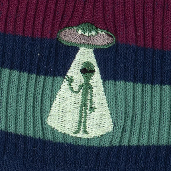 Beam up style with low-rise UFO quarter socks! Out-of-this-world comfort meets extraterrestrial flair - perfect for adventures on Earth or beyond.