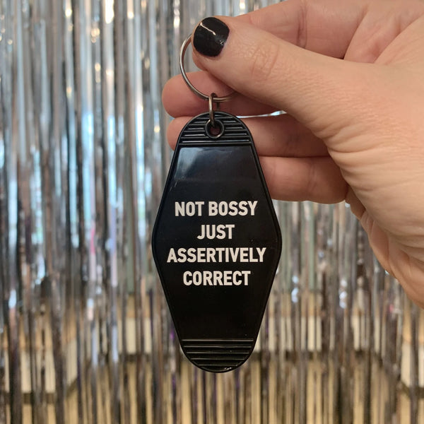 Make a statement with the Not Bossy Just Assertively Correct Motel Keychain, designed to do the talking for you in a fun and sassy way. Perfect for adding a touch of personality to your keys or making a thoughtful gift for the assertive and confident individual in your life.