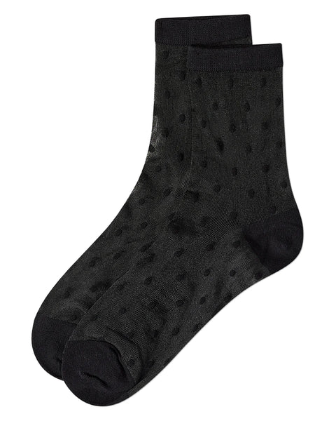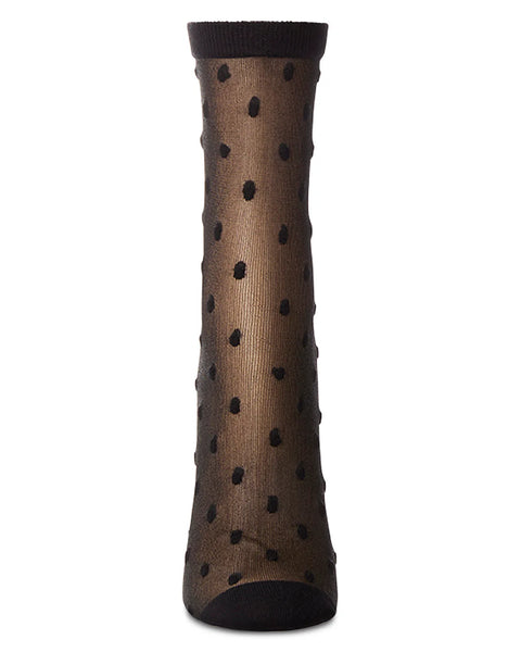 Treat your feet to the latest trend: playful, perky polka dots. They're knit right into these silky-sheer anklets for a fresh feminine look with a dash of elegant glam. The stretchy ribbed cuffs stay up comfortably all day while the reinforced heel and toe resist snags, runs, rips, and tears.